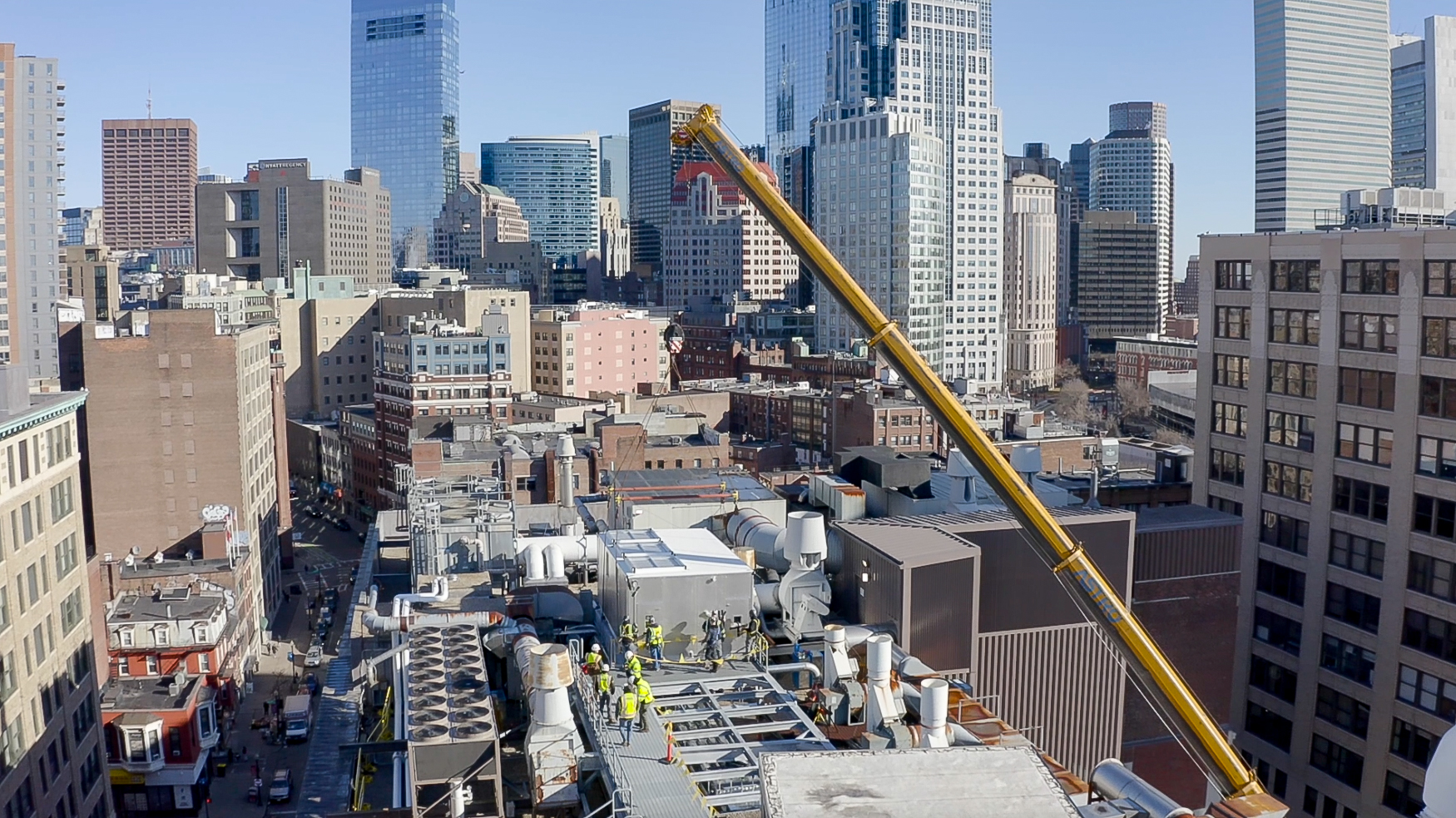 DCBA provided preconstruction and construction services for a complete overhaul of the building’s exhaust, air handling, and roofing systems, including critical equipment selection and the integration of Konvekta coils for enhanced energy efficiency. The project required careful coordination of multiple phases, including redundant system work and temporary tie-ins, to keep the building active during construction. The construction scope included replacing large RTUs, installing a new exhaust system and heat recovery system, and upgrading the roof to a fully adhered FM Global system for durability and water tightness.