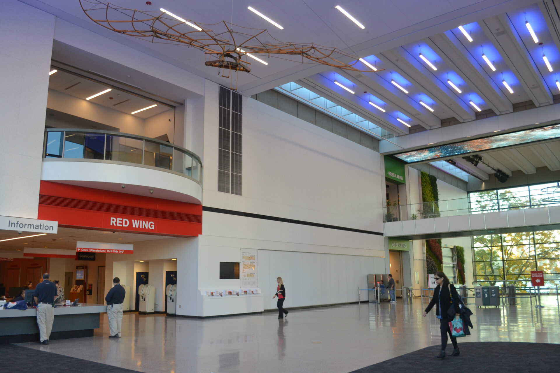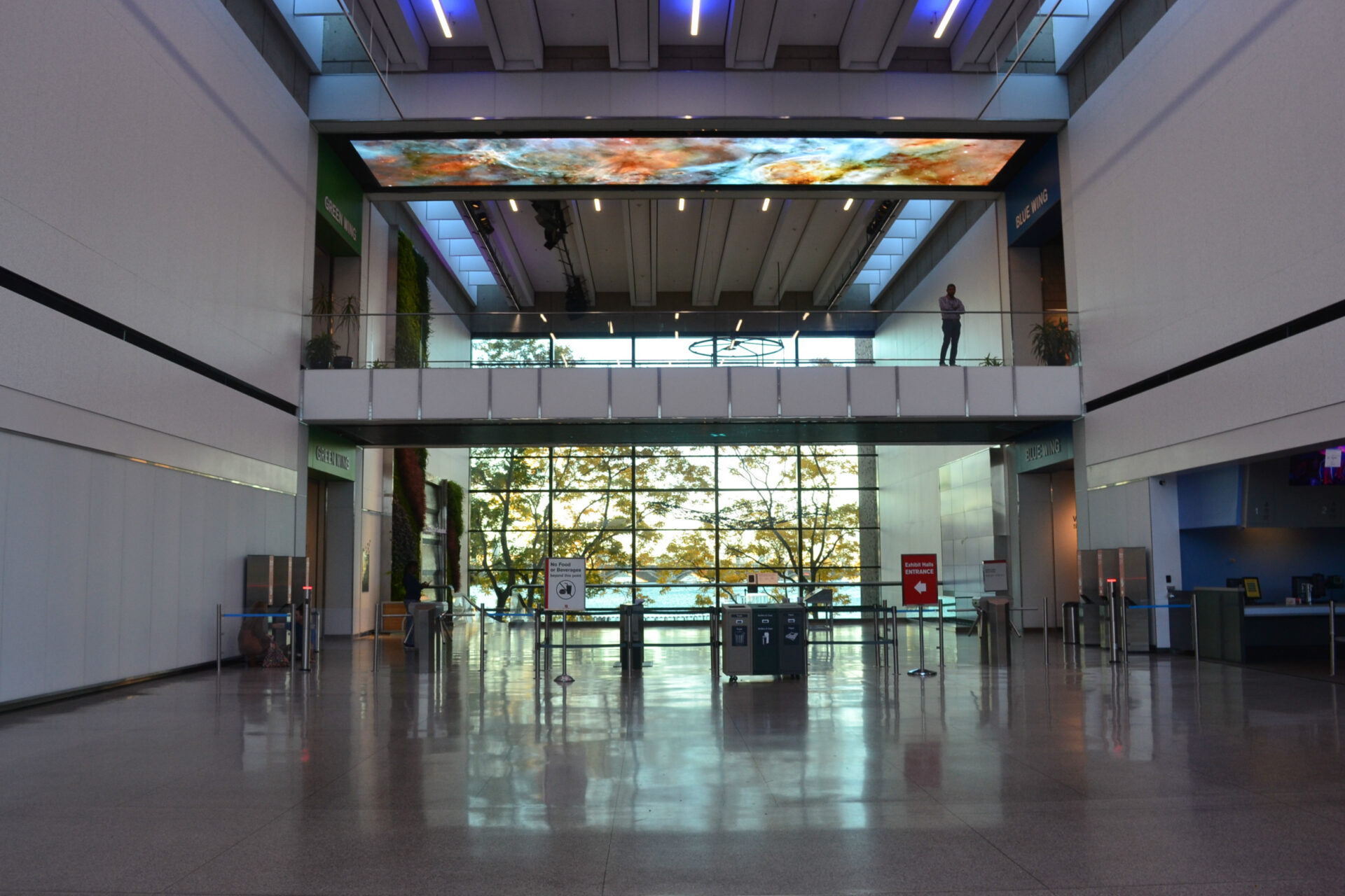 Four projects over two years requiring detailed coordination to protect the Museum’s 1.3M annual visitors and 600+ employees. Workers erected scaffolding with an expansive dance floor to safely perform work at height while transforming the Museum’s Main Lobby, Curtain Wall, Main Concourse, and Charles River Gallery. DCBA replaced exisiting exterior storefront and installed living walls, SageGlass Panels, and interactive displays while maintaining visitor experience throughout the life of each project.