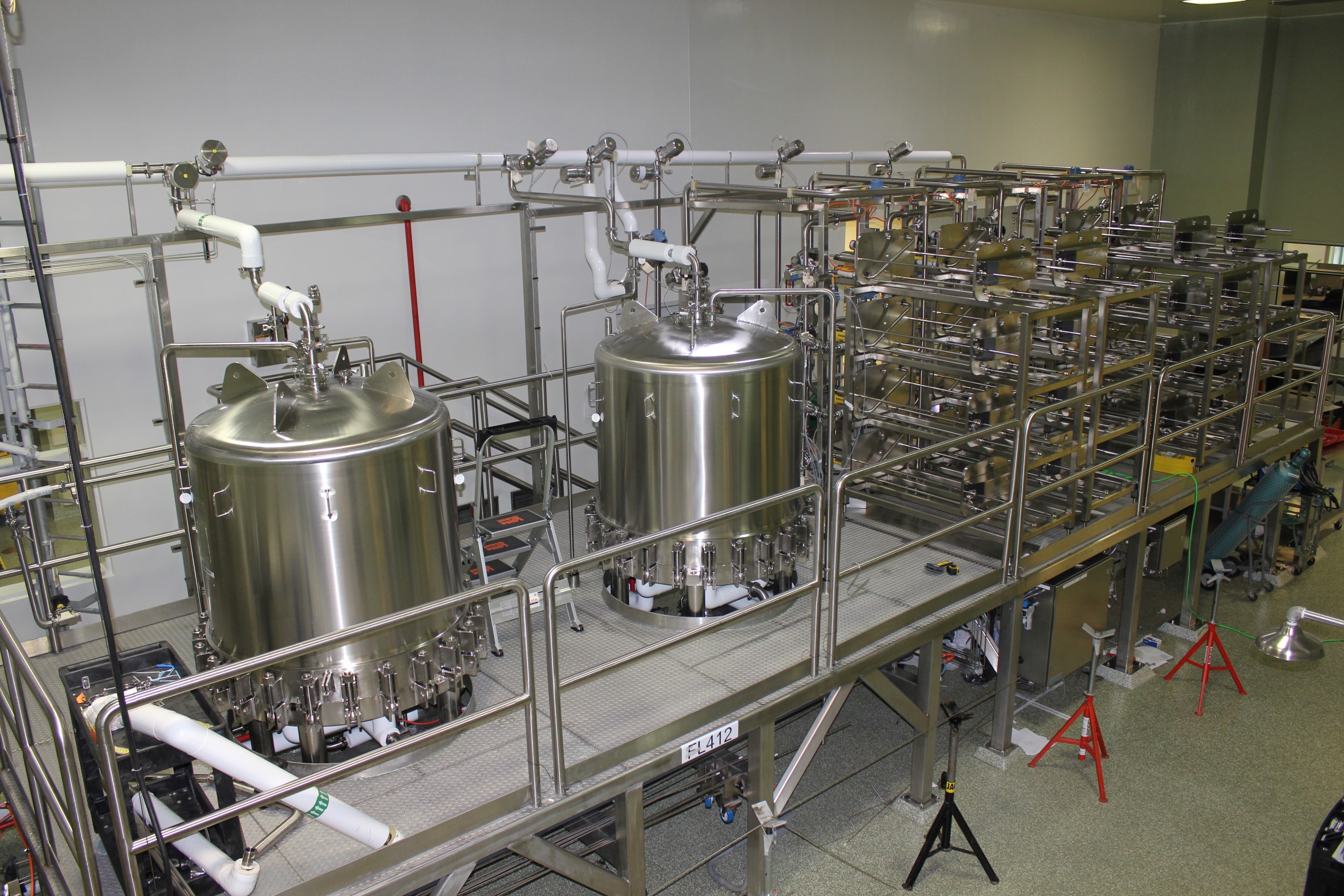 DCBA transformed an occupied and operational manufacturing space from a single product line facility to a cell-culture facility capable of producing two product lines in parallel, completing the work without impacting ongoing operations. The intense year-long preconstruction phase involved assembling a large project team of subcontractors from across the U.S., and for 17 weeks, over 120 workers were on-site 24/7 to meet the complex schedule. The project included high-purity process piping, which required rigorous QA/QC and productivity monitoring, and DCBA utilized off-site prefabrication to ensure the systems met all GMP manufacturing requirements.